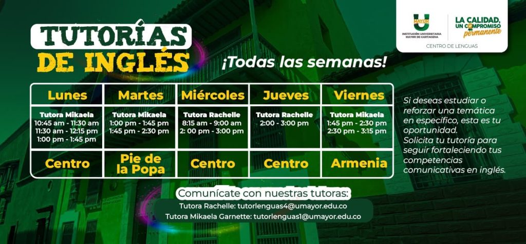 Somos un centro adscrito a la Vicerrectoría Académica de la Institución Universitaria Mayor de Cartagena ‘Umayor’, responsable de desarrollar procesos de enseñanza y aprendizaje en lenguas extranjeras, nativas y criollas además de planear, programar y ejecutar todos los módulos del idioma Inglés, incluidos en el plan de estudio de los programas de educación superior ofertados en la institución.