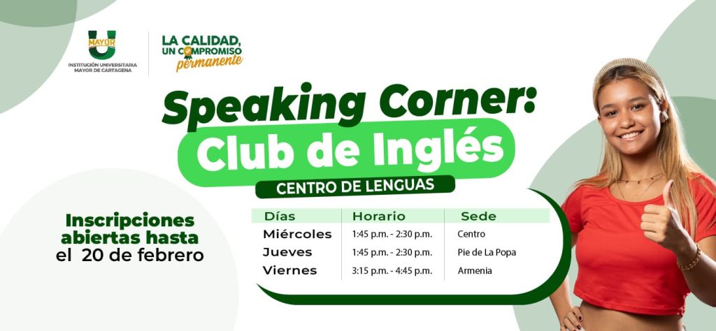 Participa de nuestros clubes de conversación en Inglés, para continuar fortaleciendo tus competencias lingüísticas.