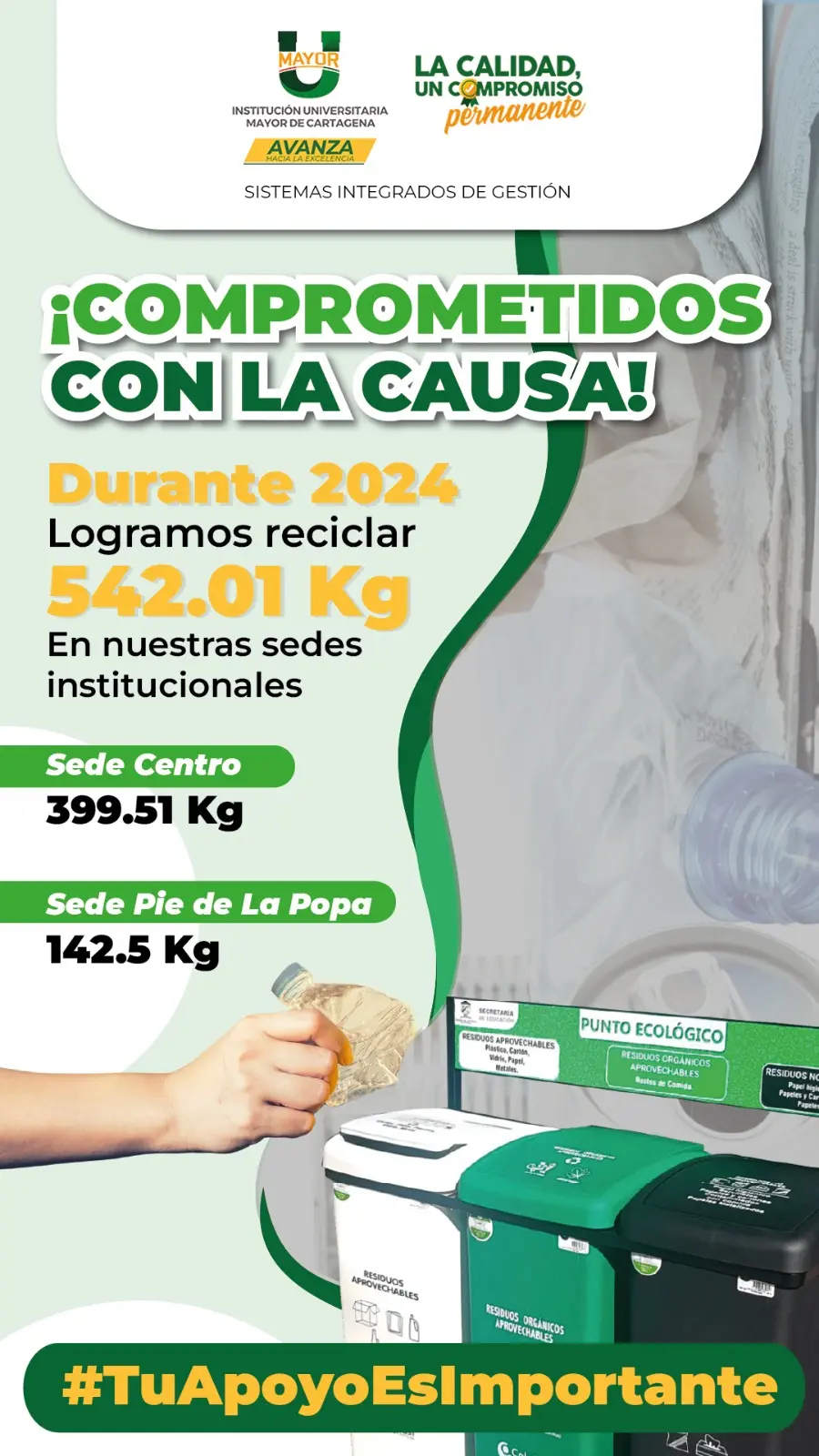 Gestionar de manera integral los residuos sólidos mediante la correcta separación en la fuente y el reciclaje a través de campañas educativas y estrategias que involucren a toda la comunidad, con el fin de construir una cultura ambiental responsable y disminuir el impacto de nuestros desechos.