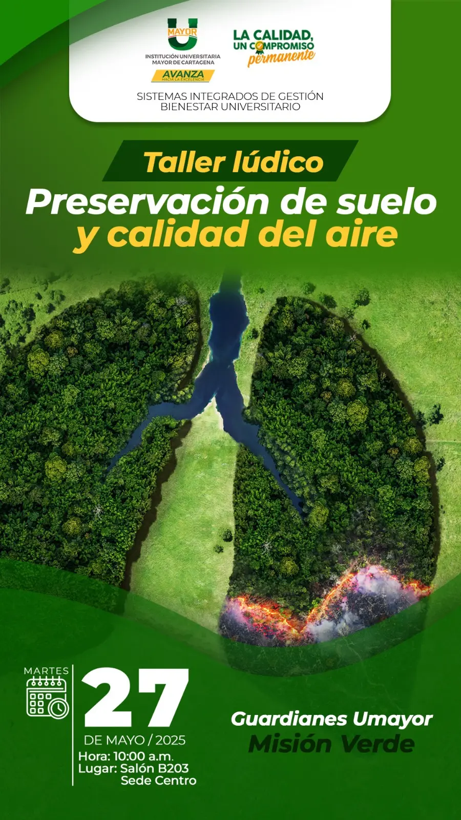 - Preservar el suelo y mejorar la calidad del aire mediante actividades de arborización, mantenimiento de zonas verdes y acciones que involucren a la comunidad en el cuidado de un entorno saludable y resiliente frente a los desafíos ambientales actuales.